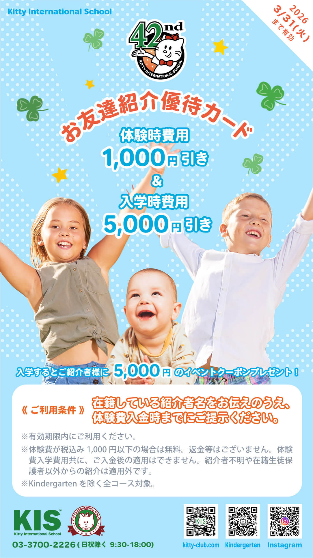 KISの生徒の紹介を受けられた方は、この優待カードをご提示ください。