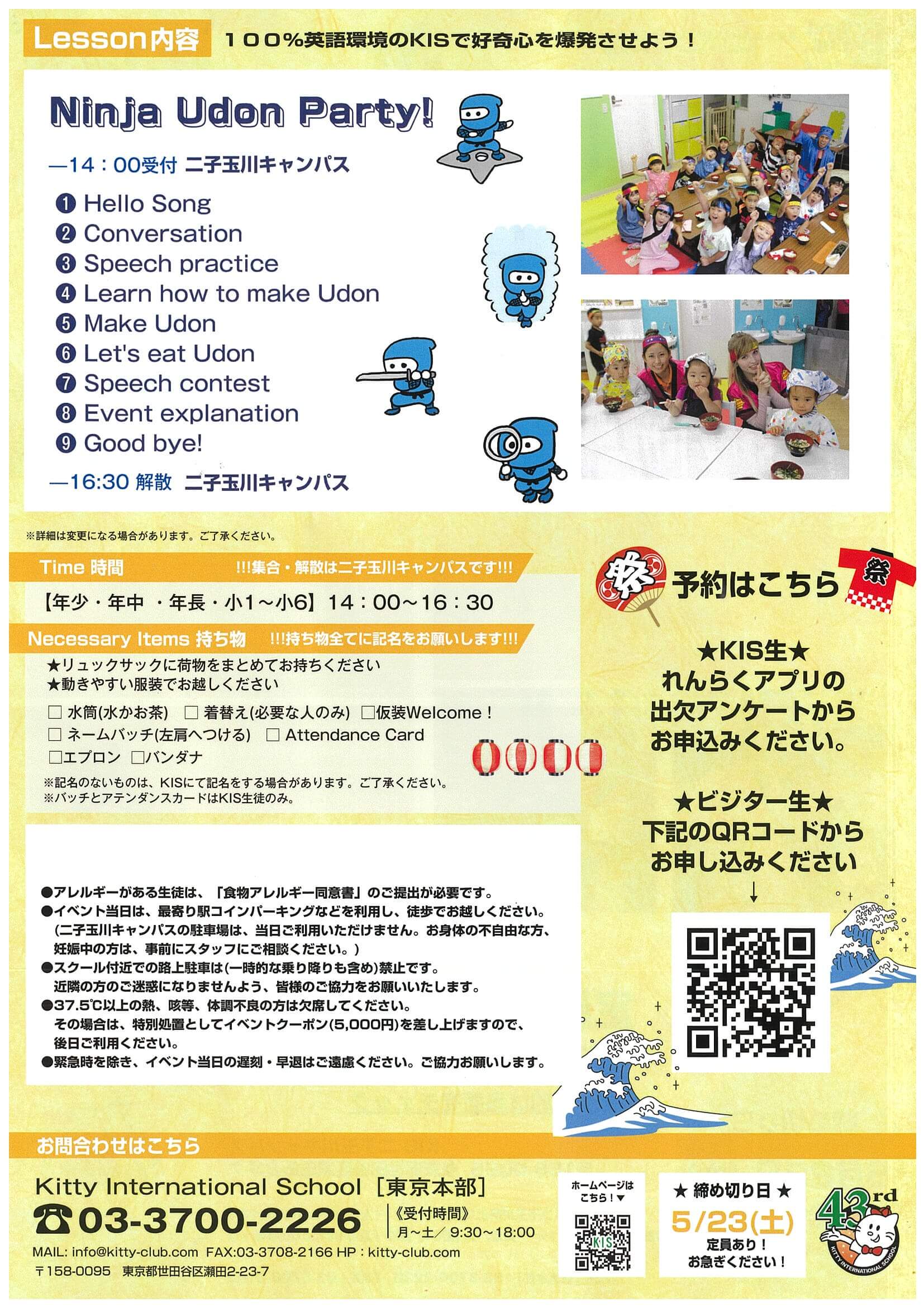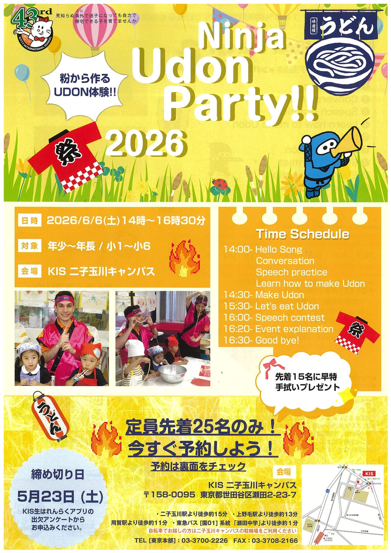 KISでは、キッズや小学生に大人気の Ninja Udon Party を、今年も開催します。